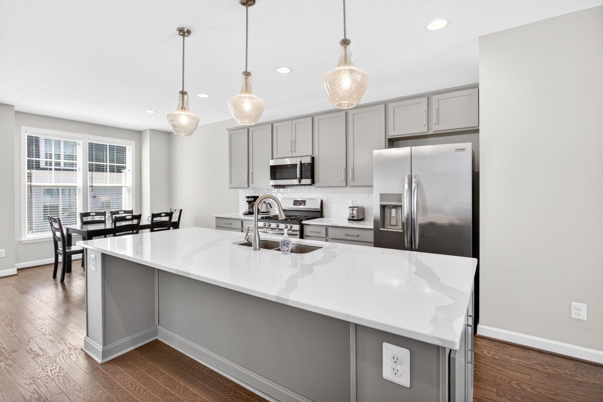 This upscale Craftsman-style townhome in Preston Lake was built in 2021 and offers 3 bedrooms, 2.5 bathrooms, and an open, well-designed layout across multiple levels. The main level features 9-foot ceilings and a bright, open living space that flows into a stylish kitchen with contemporary gray cabinetry, quartz countertops, tile backsplash, and stainless steel appliances including a gas cooktop. Step outside to a large deck with composite boards and vinyl railing ? low maintenance and perfect for relaxing or entertaining. Upstairs, three generously sized bedrooms each include a ceiling fan, with the primary suite offering a walk-in closet and a tiled shower. The lower level adds a versatile family room behind the garage with a walkout to the backyard ? ideal for a home office, rec space, or additional hangout area. A two-car garage rounds out the package. Living in Preston Lake means access to community walking trails, a playground, clubhouse with fitness center, and a pool ? plus the HOA takes care of all of your lawncare and the monthly fees includes TV/internet service ? all just minutes from downtown Harrisonburg, JMU, Sentara RMH Medical Center, Merck, and Coors.